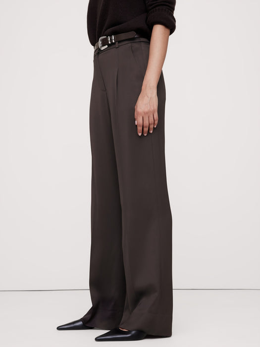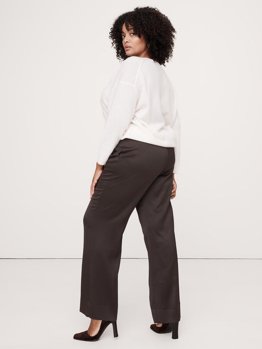 - An elevated take on the season's wide-leg pants, we cut this pair from a beautiful Italian satin fabric. Here, we added extra length to the inseam so they can be styled with a higher heel.