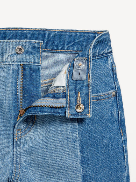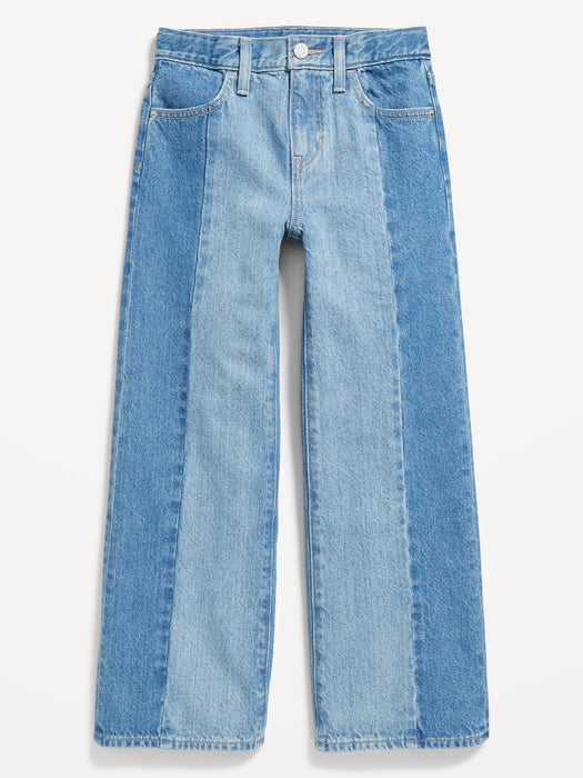 High-Waisted Two-Tone Baggy Wide-Leg Jeans for Girls