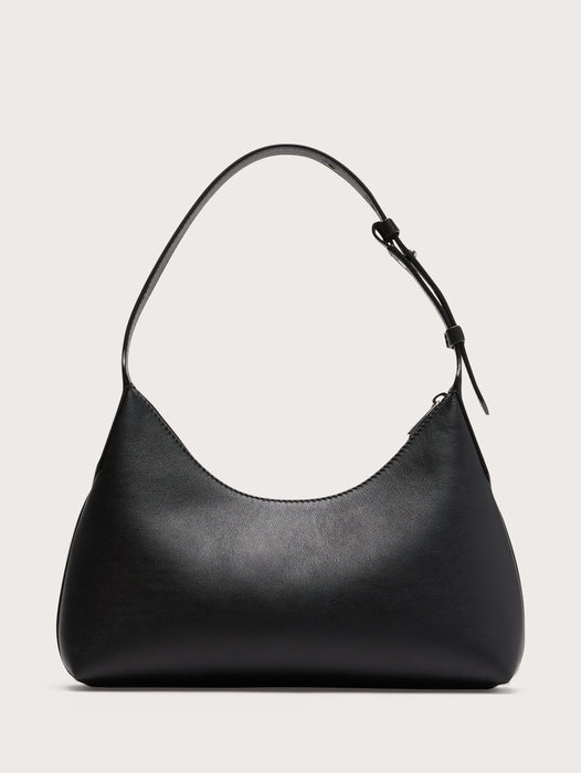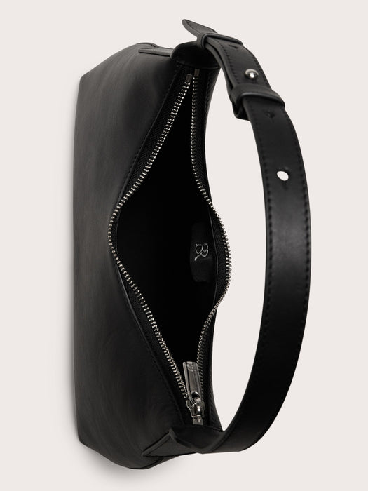- An ode to the 90s minimalist trend, this shoulder bag is cut in a silhouette that hovers somewhere between half-moon and triangle. Here, we added an adjustable strap and zip closure, keeping the styling sleek to showcase this beautiful leather.