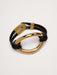 - A bold exploration of contrasting textures, this bracelet juxtaposes a fluid oval against luxurious leather. Here, artisans handcraft each piece from either 14k-gold or 999-silver plated brass.