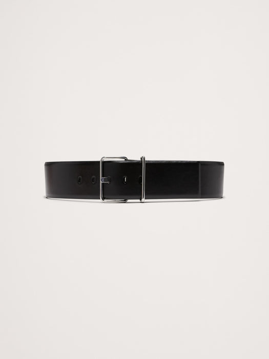 Leather Square-Buckle Waist Belt