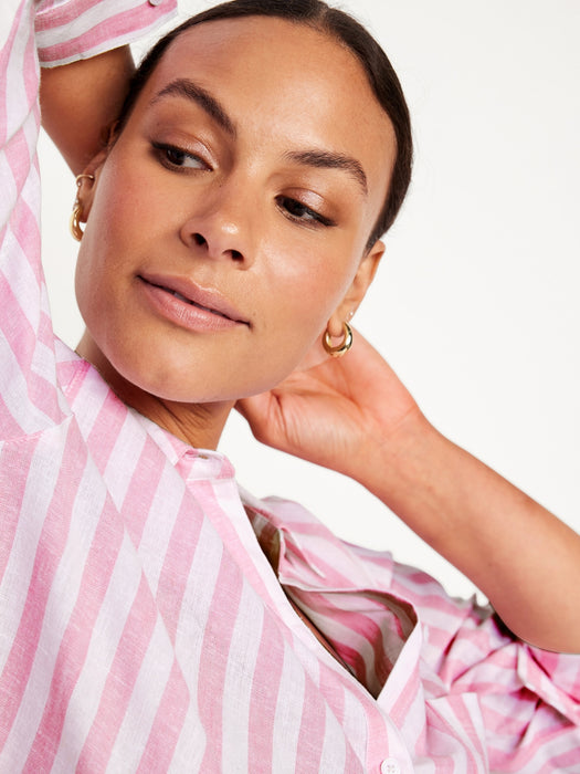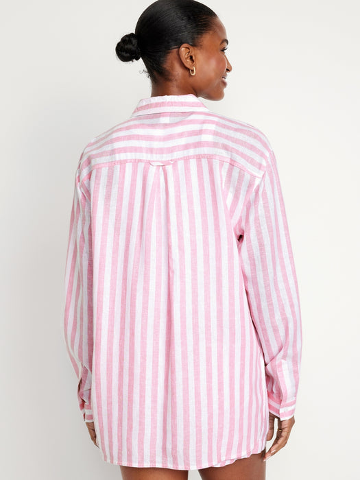 Linen-Blend Striped Boyfriend Shirt