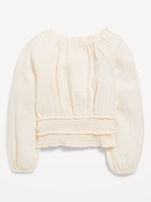 Long-Sleeve Double-Weave Smocked Top for Girls
