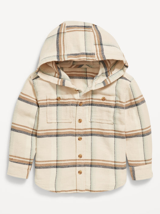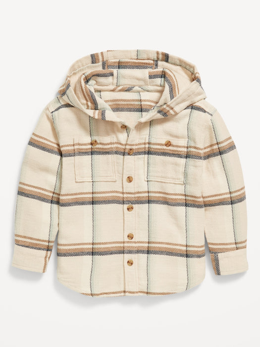 Long-Sleeve Hooded Flannel Shirt for Toddler Boys