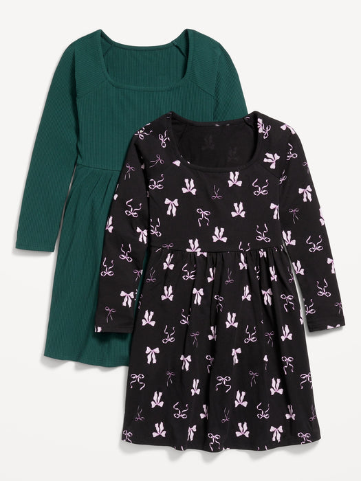 Long-Sleeve Square-Neck Fit and Flare Dress 2-Pack for Girls