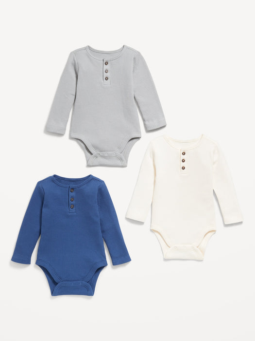 Long-Sleeve Thermal-Knit Henley Bodysuit 3-Pack for Baby