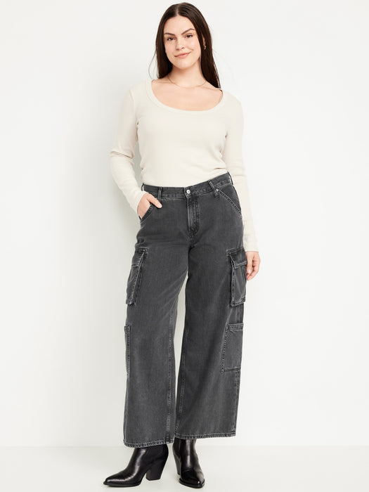 Mid-Rise Baggy Wide-Leg Cargo Jeans