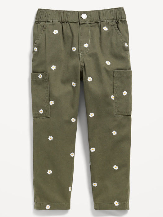 High-Waisted Embroidered Cargo Balloon Pants for Toddler Girls