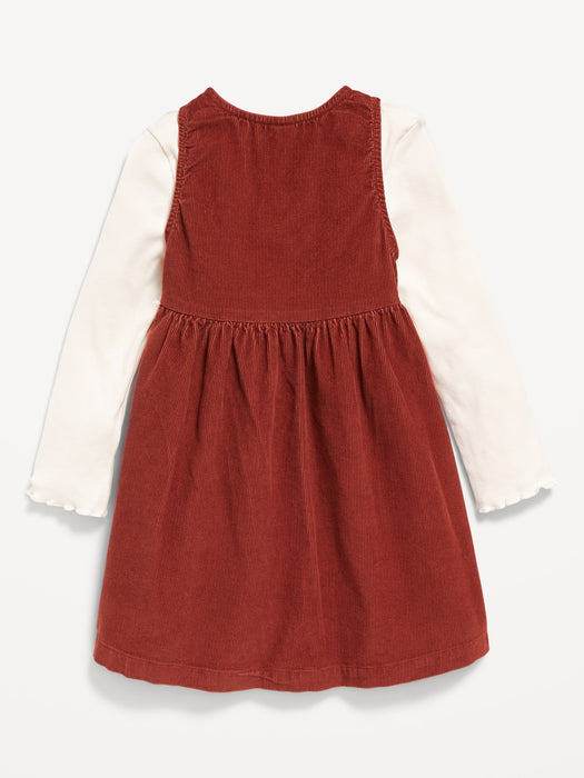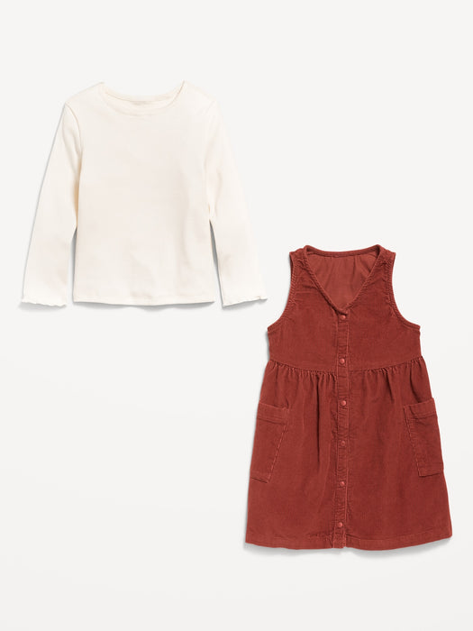 Sleeveless Pocket Corduroy Dress and Top Set for Toddler Girls