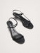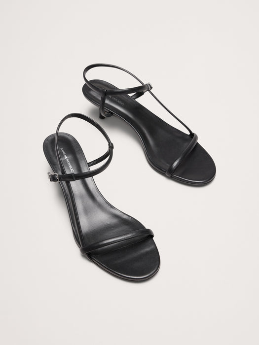 - Set atop a modest kitten heel, these sleek almond-toe sandals are crafted with puffy, Italian leather straps that wrap around the foot and ankle for a secure fit.