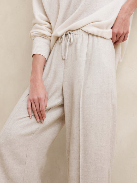 - For this easy wide-leg pant, we selected a flannel fabric from one of our favorite Italian mills which mixes silky soft viscose with warm wool.