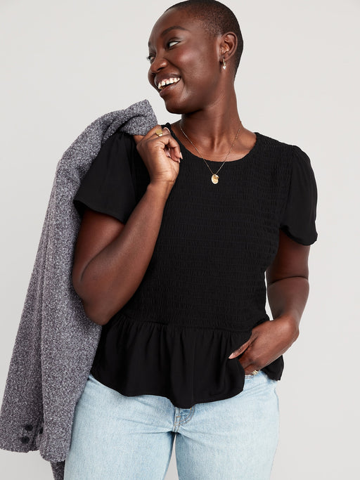 Flutter-Sleeve Smocked Peplum Blouse for Women