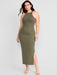 Fitted High-Neck Rib-Knit Maxi Dress for Women