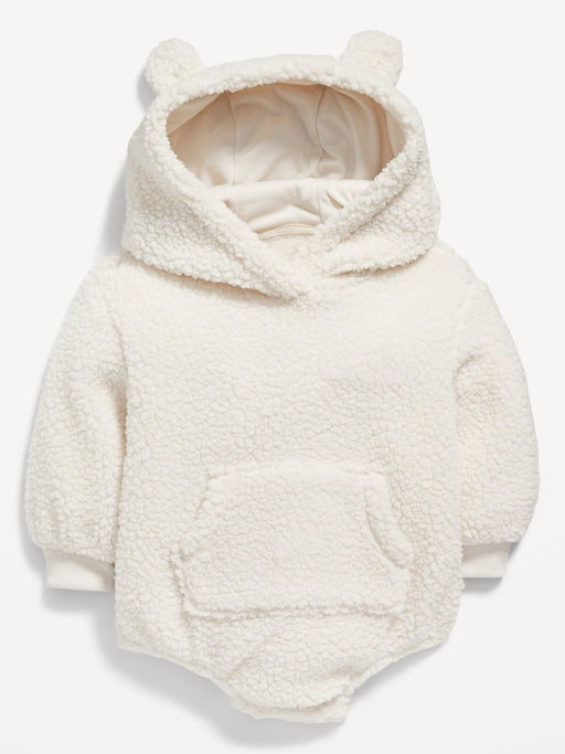 Unisex Long-Sleeve Sherpa Critter-Hooded Bodysuit for Baby