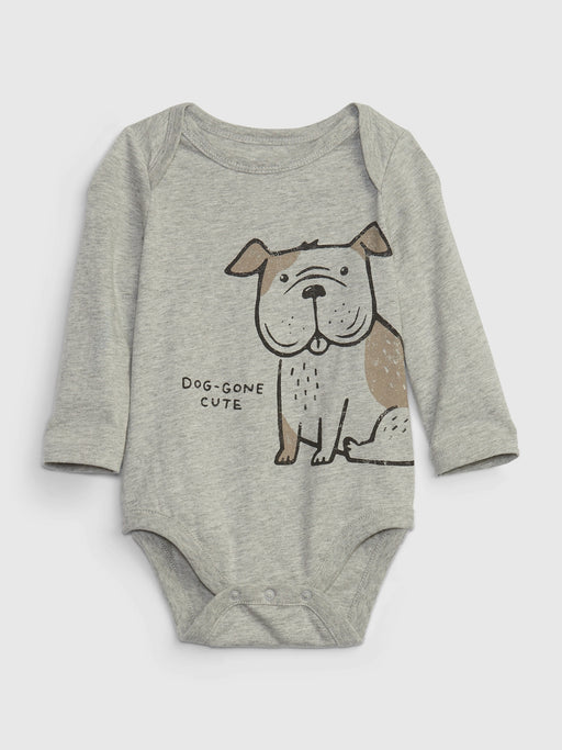 • Baby 100% Organic Cotton Graphic Bodysuit - grey dog