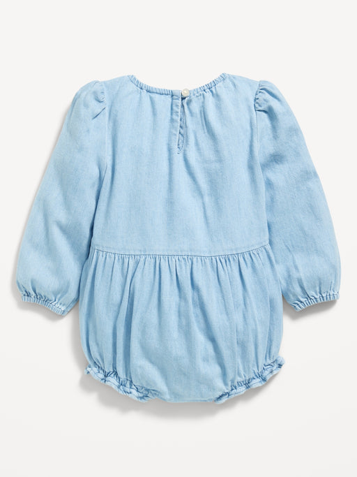 Long-Sleeve Chambray One-Piece Romper for Baby