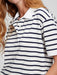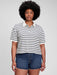 Cropped Pique Polo - white & navy blue stripe