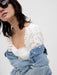 - Square neckline with ruffle trim.