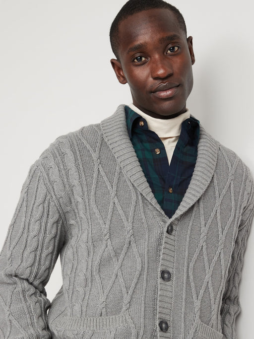 Cable-Knit Button-Front Cardigan Sweater for Men