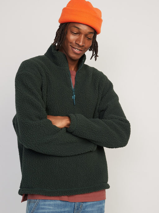 Cozy Sherpa Quarter-Zip Sweatshirt for Men - Green