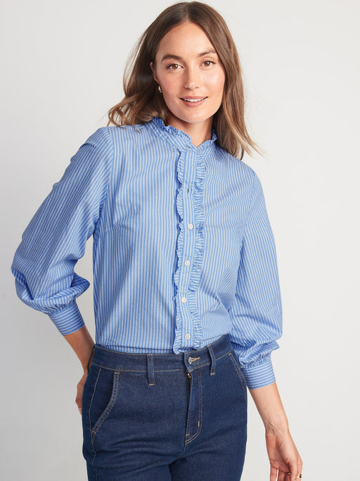 Old NavyFinal saleOriginal price €44,95Original price €44,95 - Original price €44,95Original price €44,95€17,95 - €44,95€17,95 - €44,95Current price €17,95| /Ruffle-Trimmed Striped Collarless Tuxedo Shirt for Women