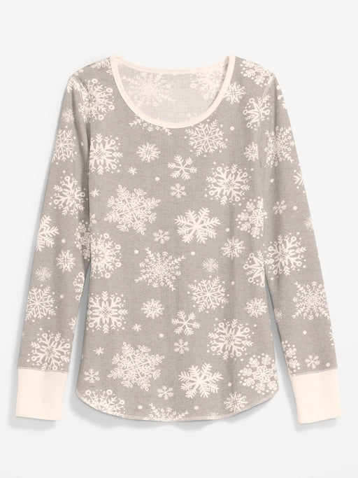 Printed Thermal-Knit Long-Sleeve Pajama Top for Women - Multi