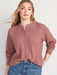- Elasticized, rib-knit henley collar, with three-button fastening.