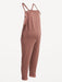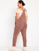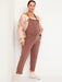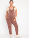 Maternity sleeveless overalls have relaxed fit through body. Regular inseam: 25". Model is approximately 5'9" and wears a size M (numeric size 8).