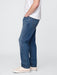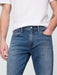 - Look: A classic five-pocket jean in a dark indigo wash.