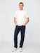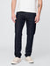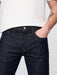 - Look: A classic five-pocket jean in a dark indigo wash.