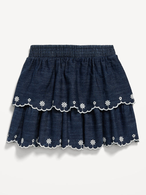 Embroidered Tiered Jean Skirt for Toddler Girls