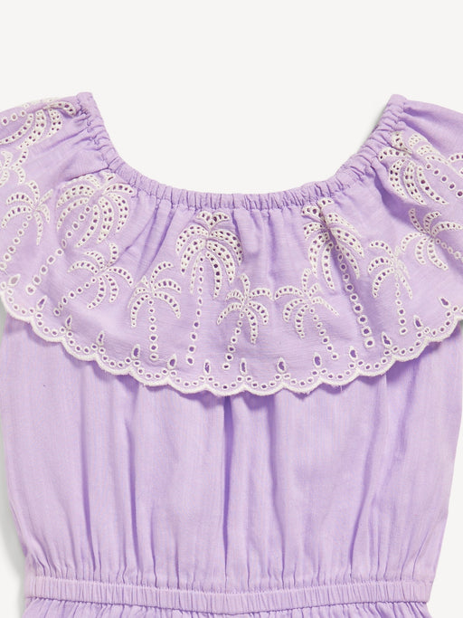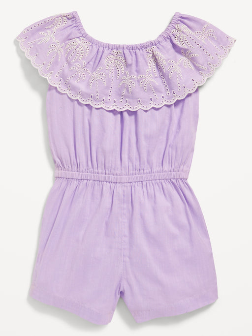 Ruffled-Trim Embroidered Romper for Toddler Girls