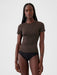 • Soft, ultra-stretchy nylon-blend T-shirt.