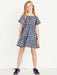 Printed Flutter-Sleeve Double-Weave Tiered Swing Dress for Girls