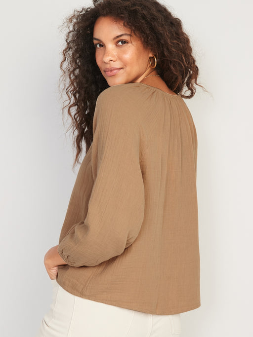 Shirred Double-Weave Long-Sleeve Blouse for Women