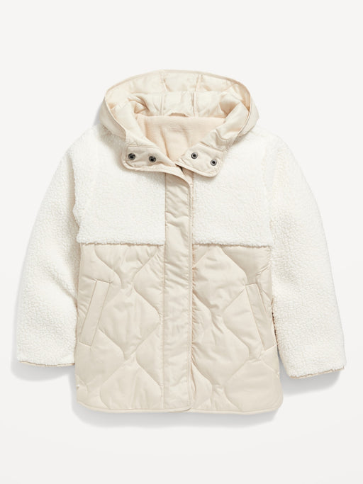 Hooded Sherpa Quilted Hybrid Coat for Girls - White