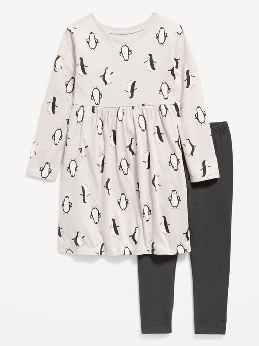 Fit & Flare Printed Jersey Dress and Solid Leggings 2-Pack for Toddler Girls