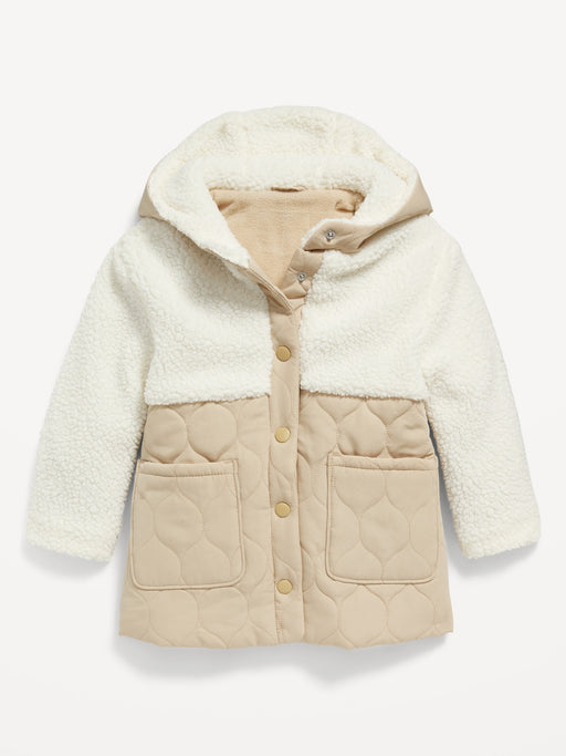Unisex Hooded Mixed-Material Jacket for Toddler - Beige