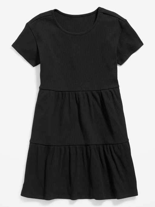 Short-Sleeve Rib-Knit Tiered Swing Dress for Girls