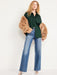 oversized fit hits at hip models are approx. 5'9" and wear sizes s (4), l (12), and xl (18)