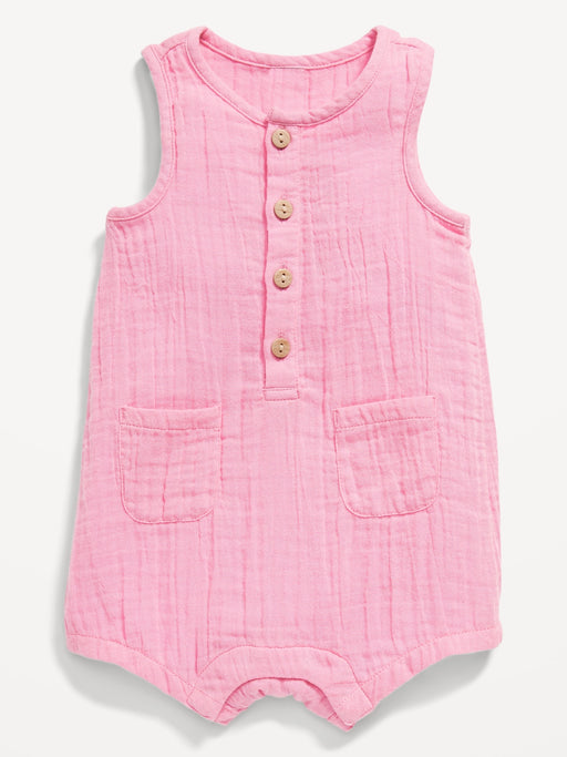 Unisex Sleeveless Henley One-Piece Romper for Baby