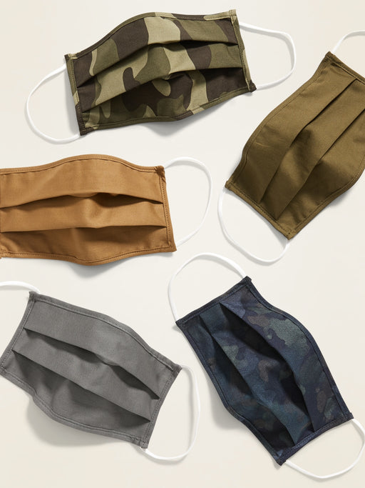 Variety 5-Pack of Triple-Layer Cloth Pleated Face Masks for Adults