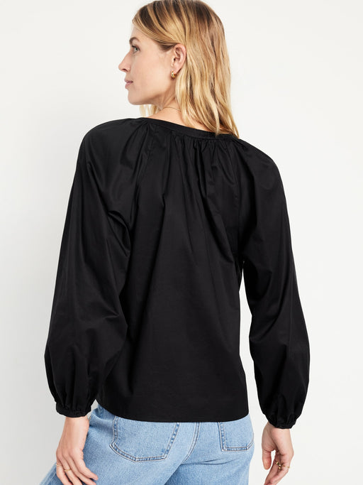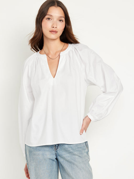 Long-Sleeve Split-Neck Top