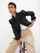 - Button-flap patch pockets at chest, slant welt pockets at hip.