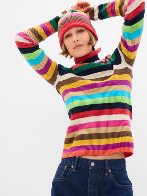 CashSoft Rib Turtleneck Sweater - multi color Happy Stripe