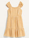Fit & Flare Cap-Sleeve Plaid Smocked Mini Dress for Women - Yellow