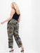 High Rise Pleated Cargo Pants with Washwell - green camo