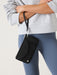 • Wristlet strap detachable with carabiner. Carry with wristlet or detach and carry as clutch. Carabiner can attach into larger bag.