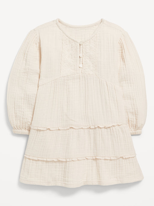 Long-Sleeve Tiered Double-Weave Dress for Toddler Girls