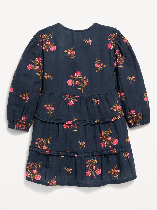 Printed Long-Sleeve Tiered Double-Weave Dress for Toddler Girls
